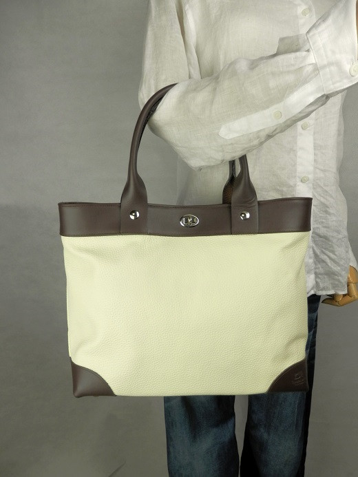 I-11 本革トートバッグ オフホワイト/ブラウン
