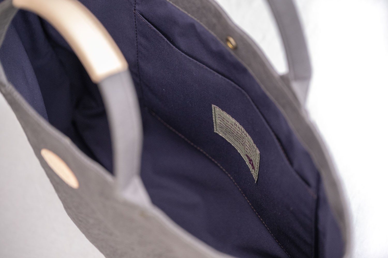 ■表地に杉原紙、裏地に播州織を使用。裏地に生地を使用することで丈夫になり、和紙特有の軽さを活かしたハンドバッグ。