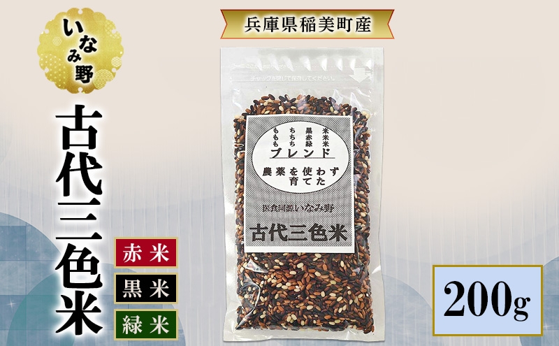 いなみ野 古代三色米 200g 国産 兵庫県産 古代米 赤米 黒米 玄米 ごはん ご飯 混ぜるだけ 簡単 ビタミン ミネラル 食物繊維 健康 美容 栄養