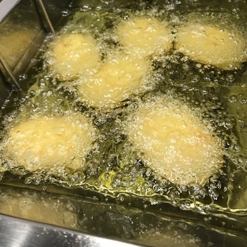 コロッケの具材としてじゃがいもと玉ねぎと一緒にのりを混ぜ込み、噛めば噛むほどフワッとのりの風味を感じて頂けます。