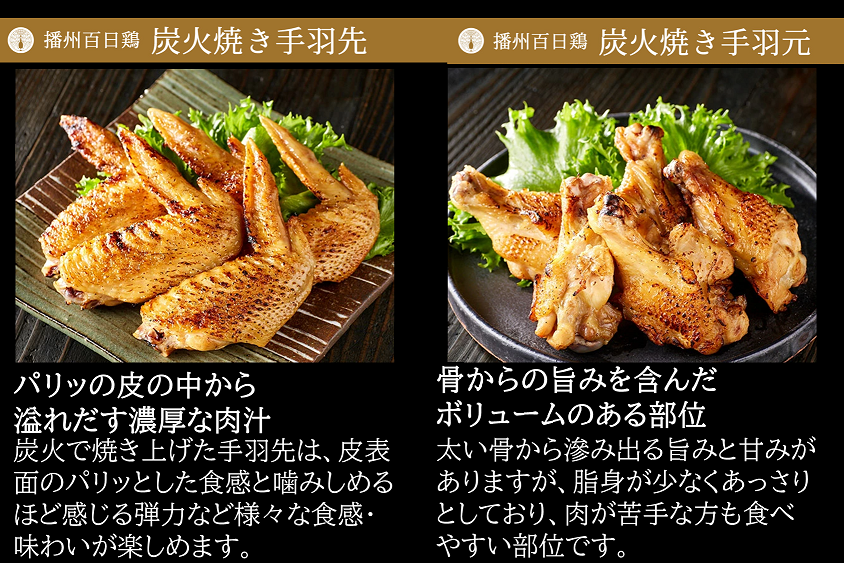 兵庫県の播州地方で、100日かけて大切に育てられる「播州百日鶏」。 若鶏のぷりぷりの弾力と、ひね鶏の濃厚な旨み、両方を堪能することができます。 その百日鶏の4つの部位を、炭火でじっくり焼き上げました。 外はパリッと香ばしく、中はぷりっとした噛みごたえ。 シンプルにみそだれでいただくもよし、様々なお料理にアレンジするもよし、希少な播州百日鶏をたっぷりとご堪能ください。