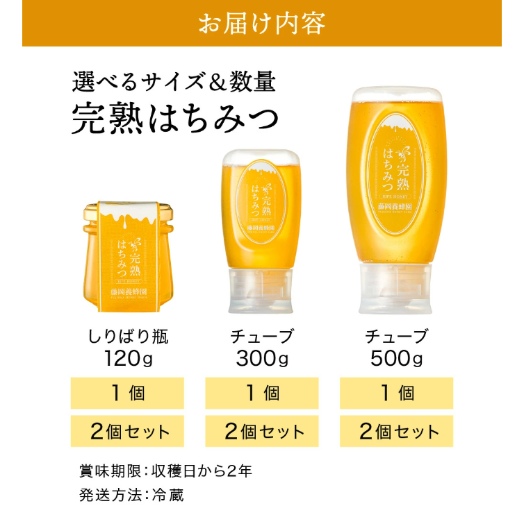 収穫のタイミングを見極め、巣の中で蜂たちが蜜を十分に熟成させた完熟はちみつ 【2025年採蜜】 完熟はちみつ 120g (藤岡養蜂園)004FY01N. / 完熟 熟成 天然 ハチミツ 養蜂 蜂蜜 ミツバチ しりばり 瓶 チューブ 選べる