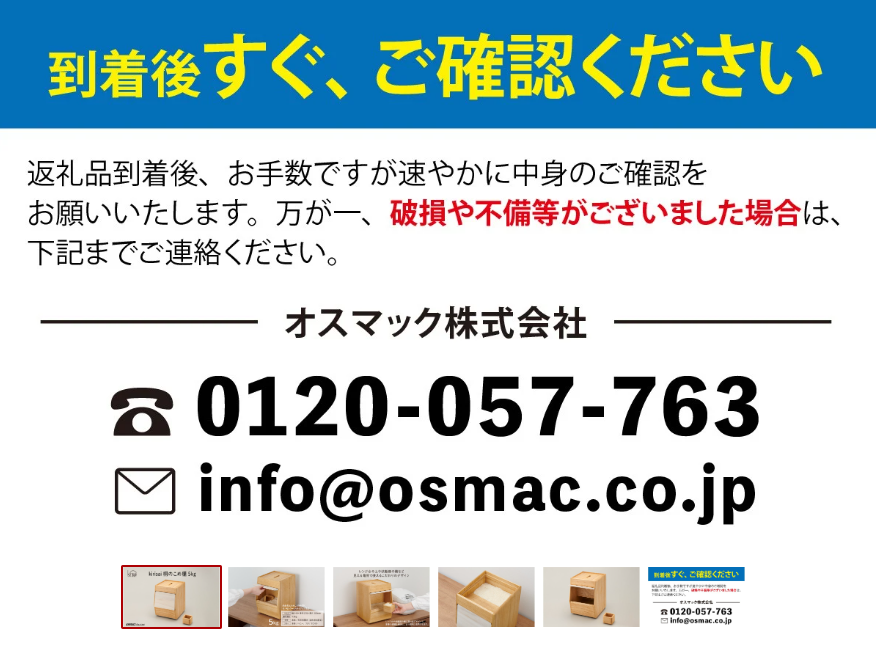 返礼品のお受け取り後はすぐに中身や状態をご確認くださいませ。