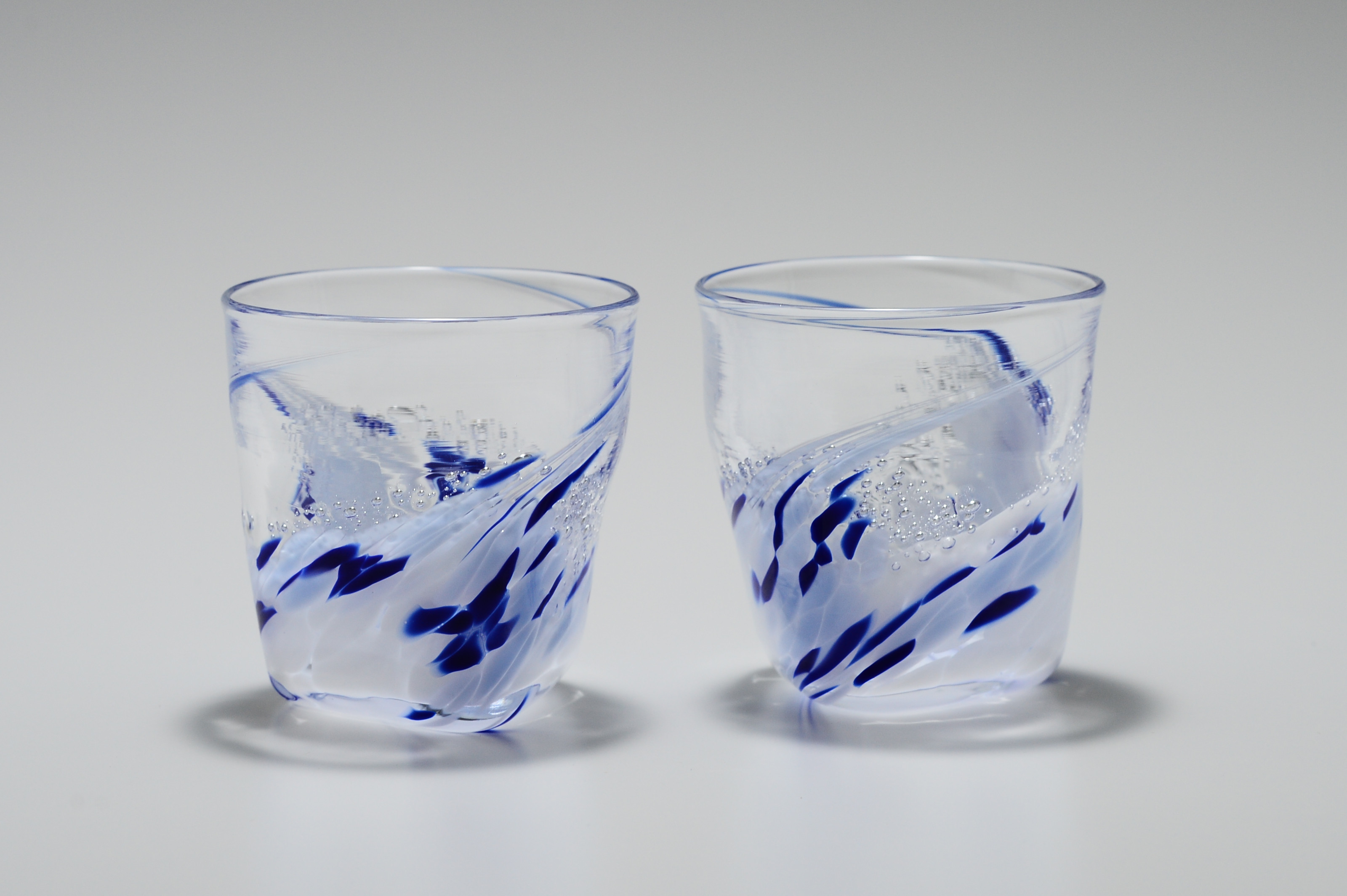 流れるような模様で清涼感のあるペアグラスです ペア三角グラス(青×水色) 川原有造作 | 兵庫県 上郡町 ガラス 硝子