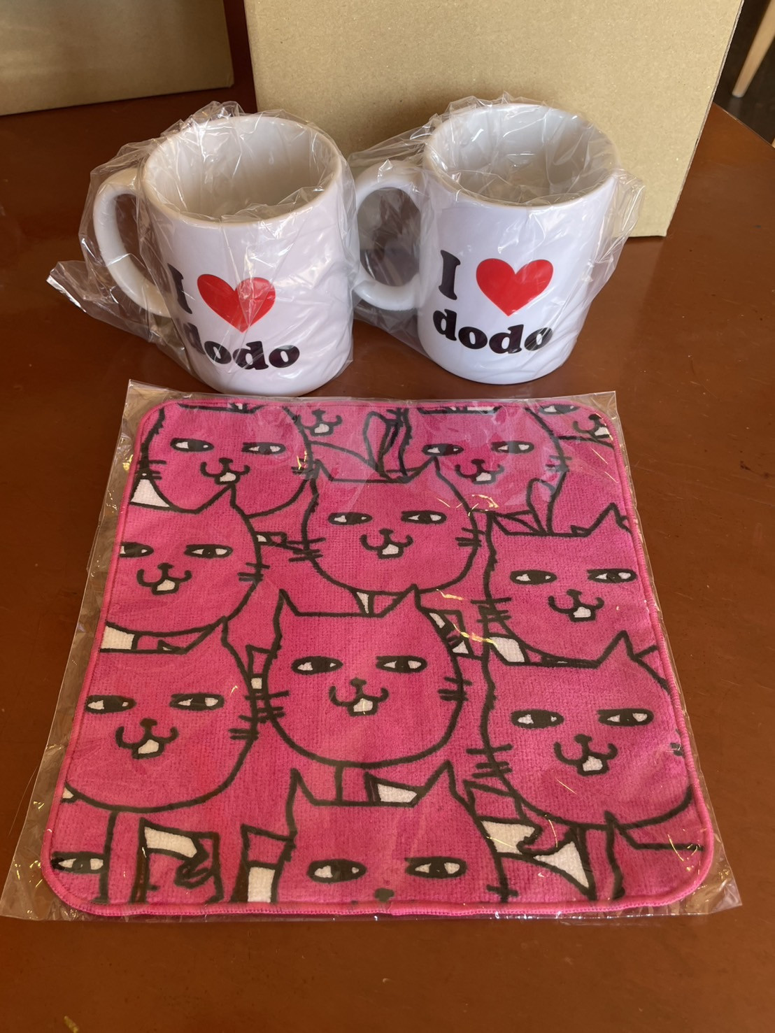 キャッツチャリティー播磨オリジナルキャラクター「ドド猫」のマグカップ2個とミニタオルのセットです。