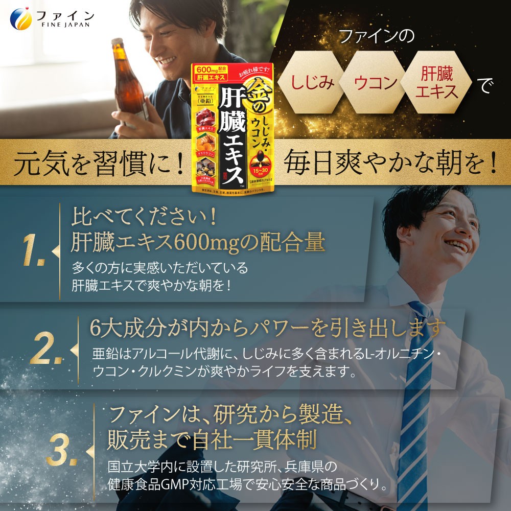 【ファイン】金のしじみウコン肝臓エキス90粒 10個セット | しじみ ウコン 肝臓 サプリメント 豚レバー 肝臓水解物 ウコン クルクミン 亜鉛 オルニチン 肝臓エキス クスリウコン セット 飲酒対策 お酒好き 二日酔いケア 翌朝すっきり 健康維持 飲み会 ビジネスマン 中高年 健康 続けやすい 粒タイプ 日本製 健康食品 飲酒前 兵庫県 上郡町