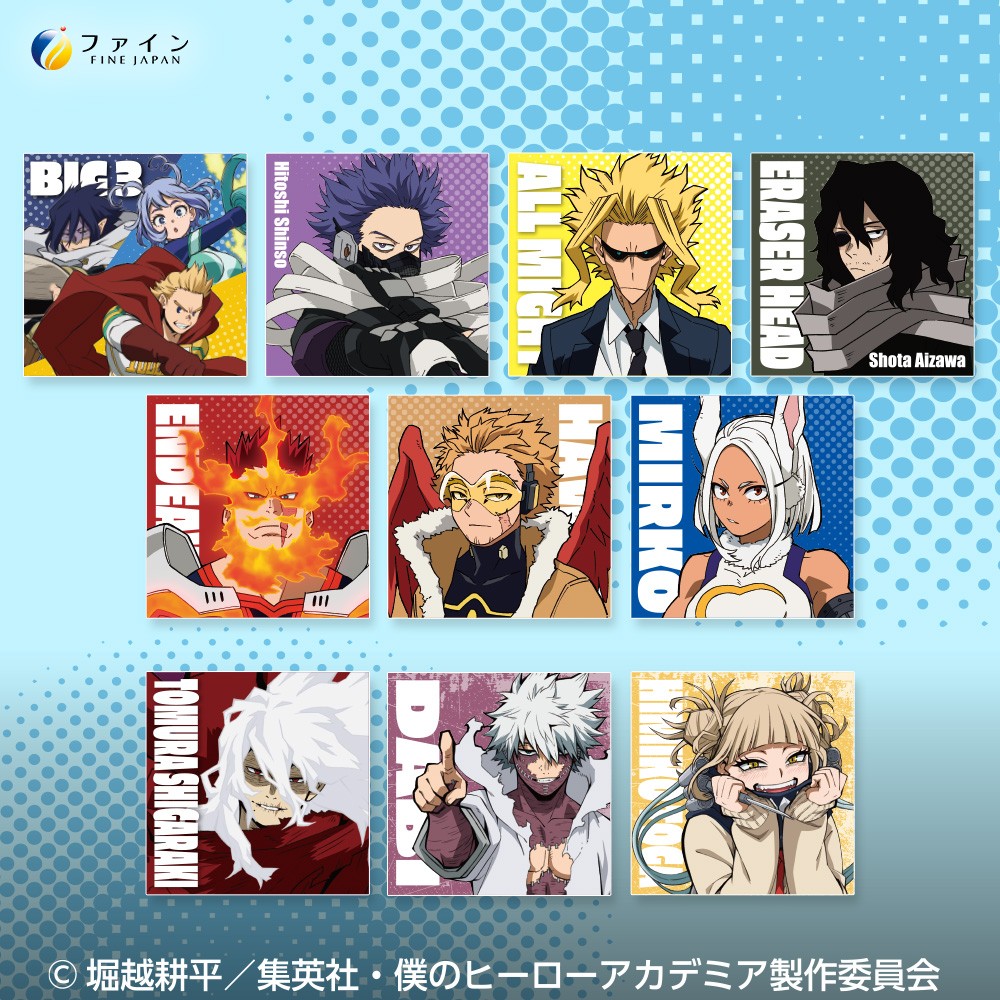 緑谷出久や、爆豪勝己、麗日お茶子、轟焦凍のキャラクターがデザインされた限定のオリジナルシール全24種が1箱につき1枚ランダムで付いてきます。