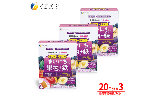 ゼリーdeサプリ まいにち果物+鉄 × 3個セット(60日分)| ゼリ…