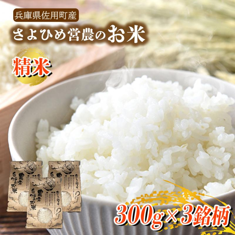 【兵庫県佐用町産】さよひめ営農のお米 食べ比べセット(300g×3銘柄) / 精米 お試し ブランド米 キヌヒカリ キヌムスメ てんこもり 小分け 2合