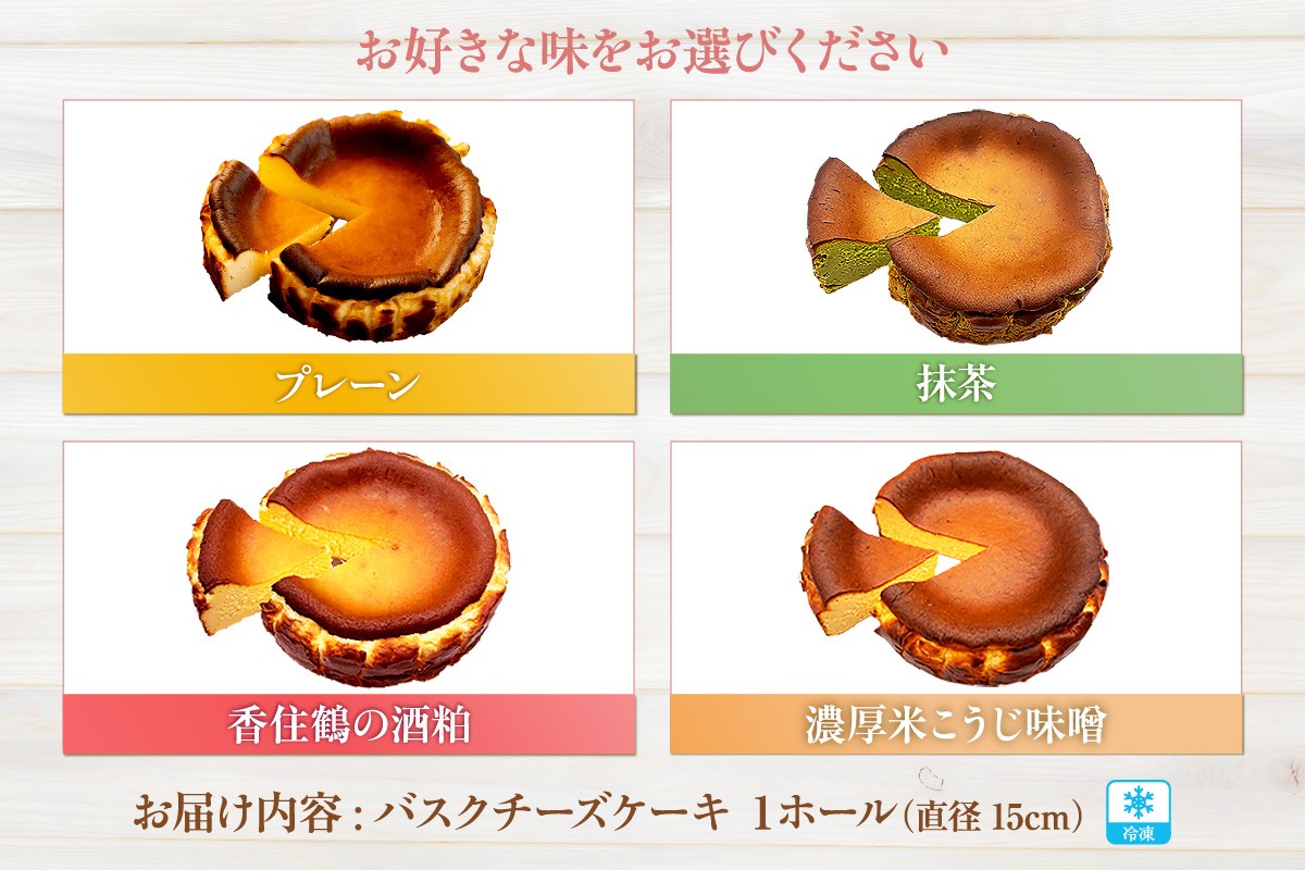 | 容量 | 低糖質 バスクチーズケーキ 直径15cm 【テイスト】 プレーン・抹茶・香住鶴 純米大吟醸の酒粕・濃厚米こうじ味噌 |
