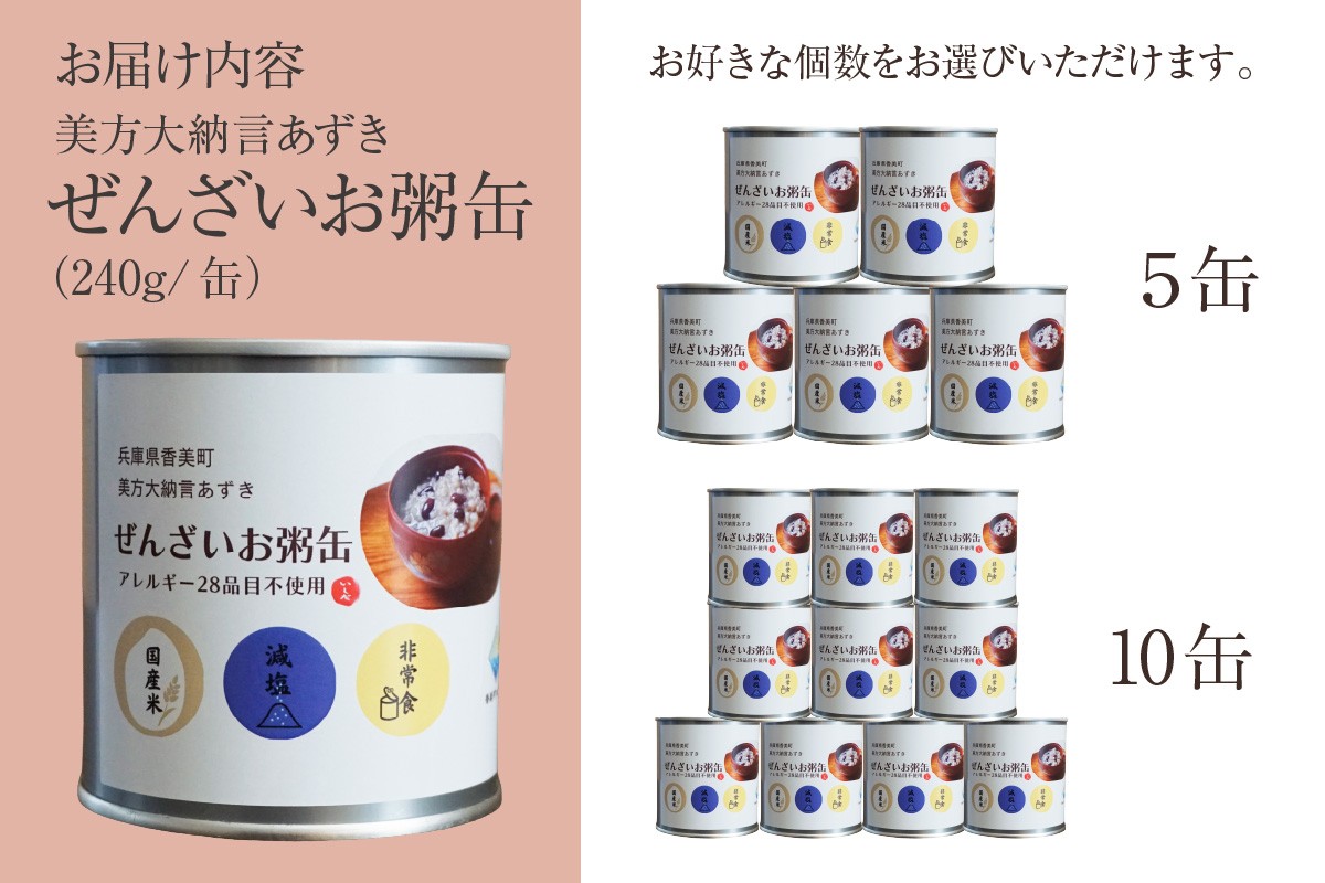 チョイスPayポイントと交換できる品 ブランド小豆を贅沢に使ったほっと温まる優しい甘味のぜんざい風お粥 《選べる個数 5缶・10缶》【美方大納言あずき ぜんざいお粥缶 1缶240g 常温】 大納言 小豆 あずき 大納言小豆 おかゆ お粥 ぜんざい 善哉 缶詰 非常食 アレルギー28品目除去 お土産 プレゼント ギフト 国産 自宅用 贈答用 ふるさと納税 おすすめ 返礼品 兵庫県 香美町 美方 香住 民宿いしだ KKH 48-P-2324