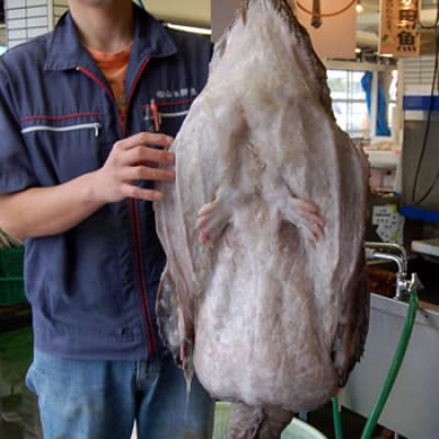 山陰沖で水揚げされた大きなアンコウを鍋用に捌いております。