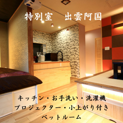 (3)新湯治やリモートワークなど長期滞在にも快適な、トイレ、キッチン、プロジェクター、洗濯機付きのベッドルーム