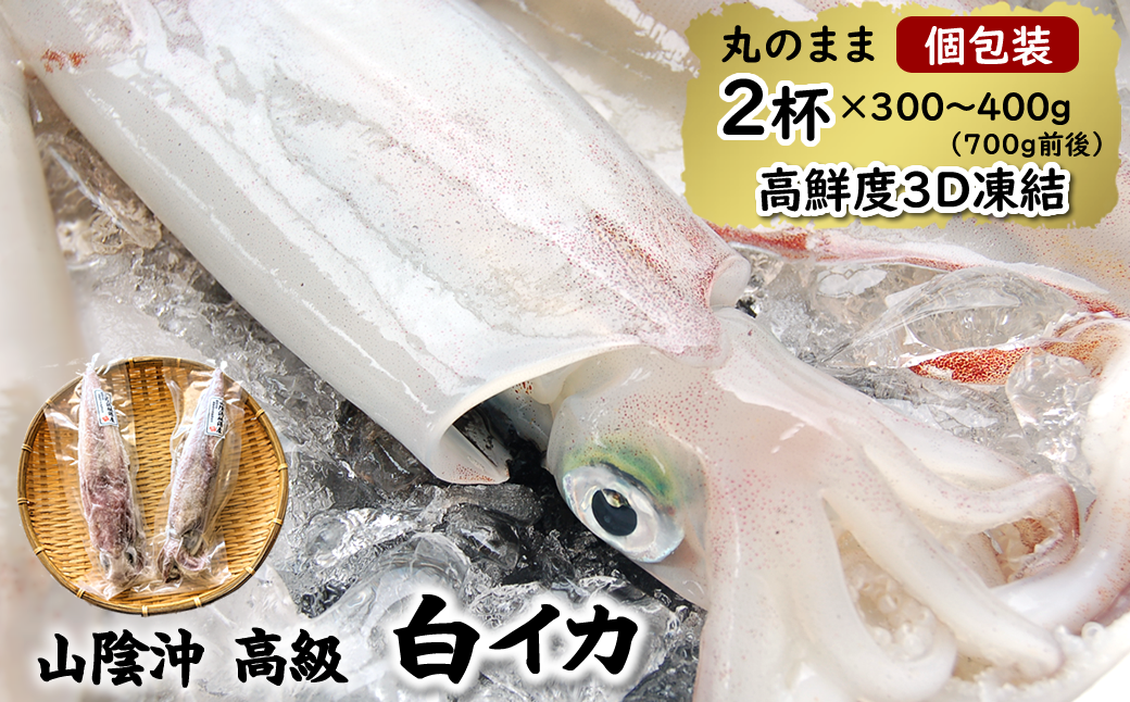 山陰の夏の風物詩「白イカ」です。兵庫県浜坂漁港よりお届けします! 【便利な個包装】高級朝とれ白いか 2杯セット(2杯×300~400g)700g前後 高鮮度3D凍結