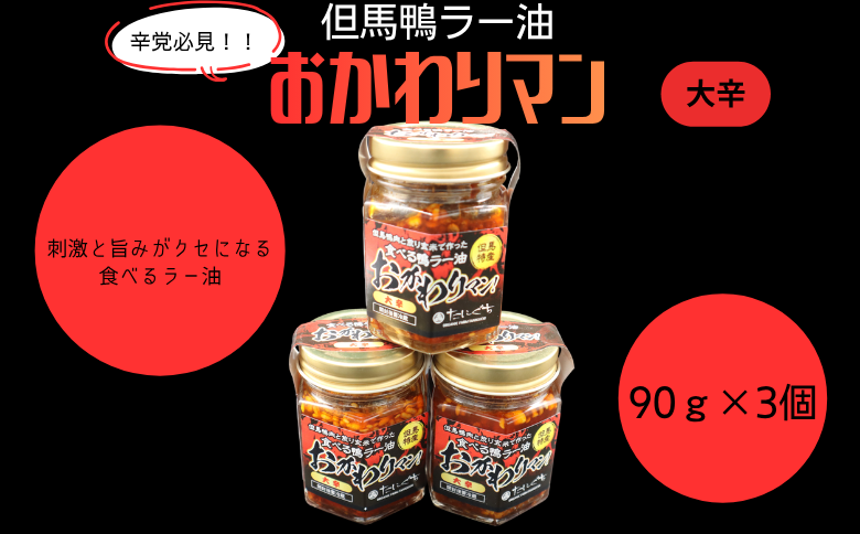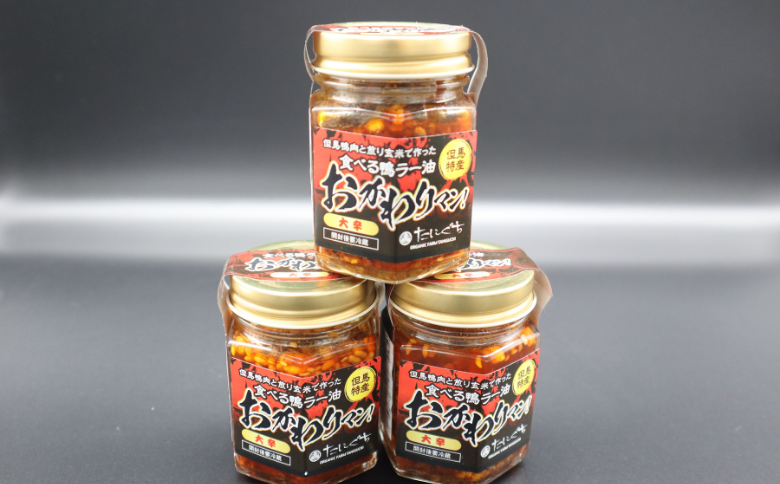 但馬鴨肉をたっぷり使用した食べるラー油の大辛タイプ。