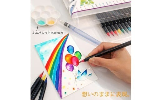 チョイスPayポイントと交換できる品 思うままに水彩を楽しめるセット! 水彩毛筆「彩」 鮮やかな日本の伝統色 奈良筆あかしや 水彩画 水彩 毛筆 水性顔料 塗り絵 筆 カラー筆ペン 筆ペン 奈良県 奈良市 U-72