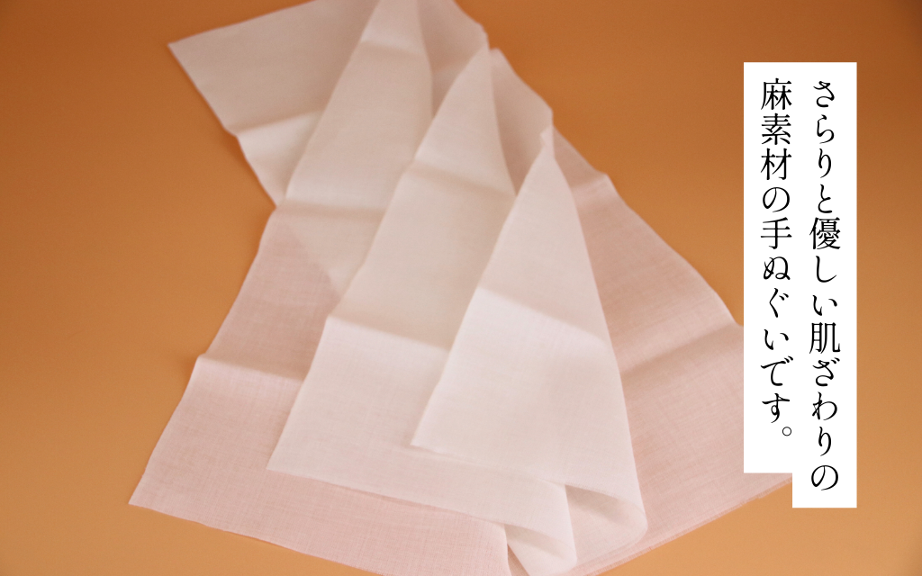 さらりと優しい肌ざわりの麻素材の手ぬぐいです。