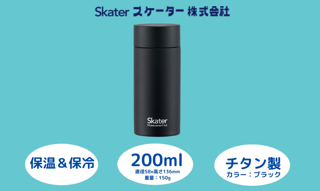 チョイスPayポイントと交換できる品 寒い時期にも暑い時期にも最適のチタン製ボトル♪ 小さいカバンにも入るサイズです! チタン製マグボトル 200ml 水筒 保温保冷「ブラック」 〈スケーター株式会社〉 チタン製 マグボトル 洗いやすい アウトドア 直飲み 小さめ 軽量 200ミリリットル 奈良県 奈良市 なら 22-009 56320-1-TMB2
