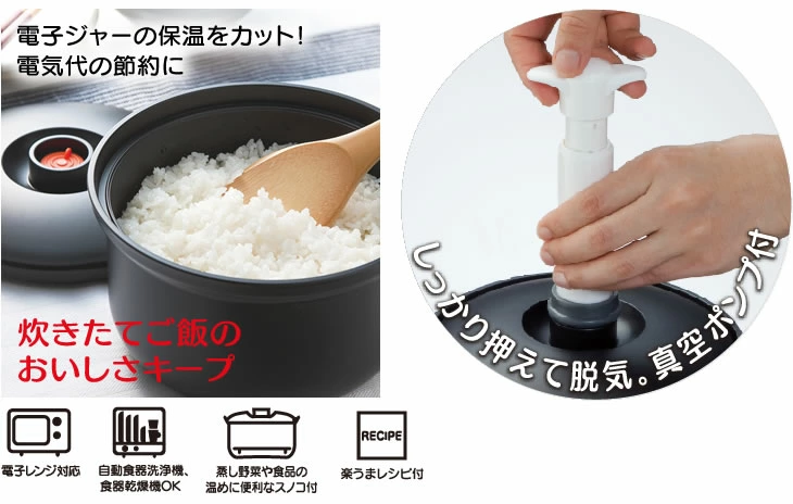 チョイスPayポイントと交換できる品 真空保存で美味しさ長持ち!電子レンジ加熱用の蒸し器としても使用可♪ 真空おひつ (スケーター株式会社) 電子レンジ対応 レシピ付き ご飯 保存 真空保存 キッチン用品 調理 料理 キッチン 奈良県 奈良市 なら 10-038 18694-3-BOH3