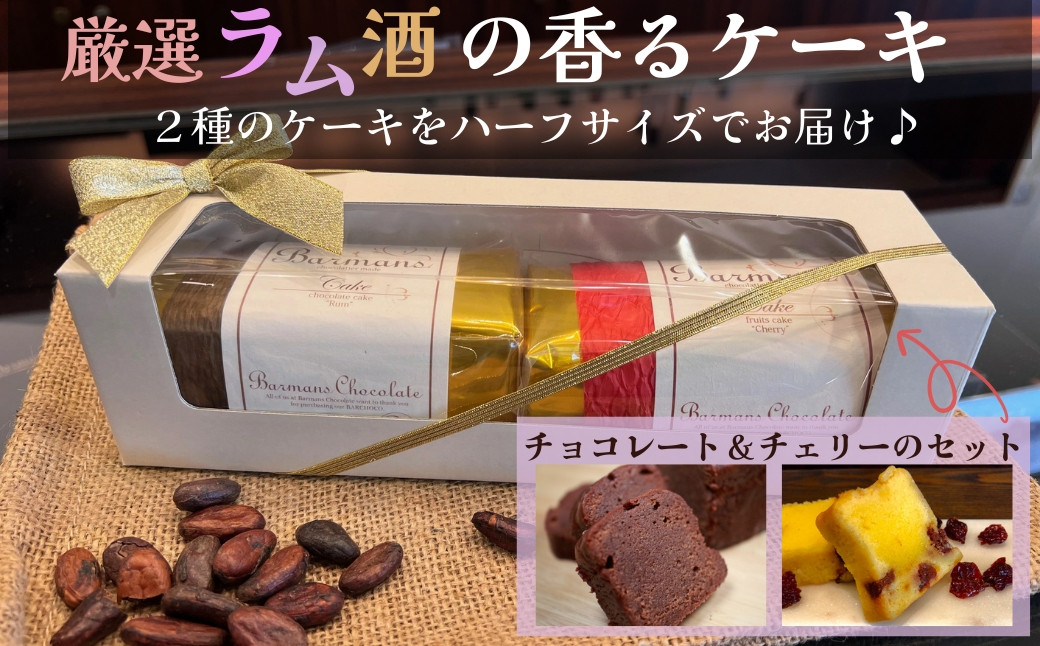 洋酒のケーキ ハーフサイズ2本セット(チョコレート×1・チェリー×1)(バーマンズ) チョコ 洋酒 ラム ケーキ デザート 駄菓子 高級 ギフト お礼の品 クリスマス バレンタイン お中元 故郷納税 詰め合わせ お取り寄せ グルメ 奈良県 奈良市 なら 11-014