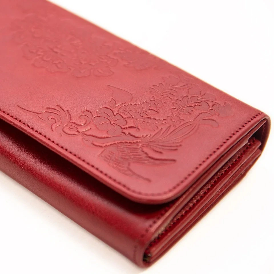 正倉院文様が美しく刻まれた、ハイクラスのヌメ革財布。