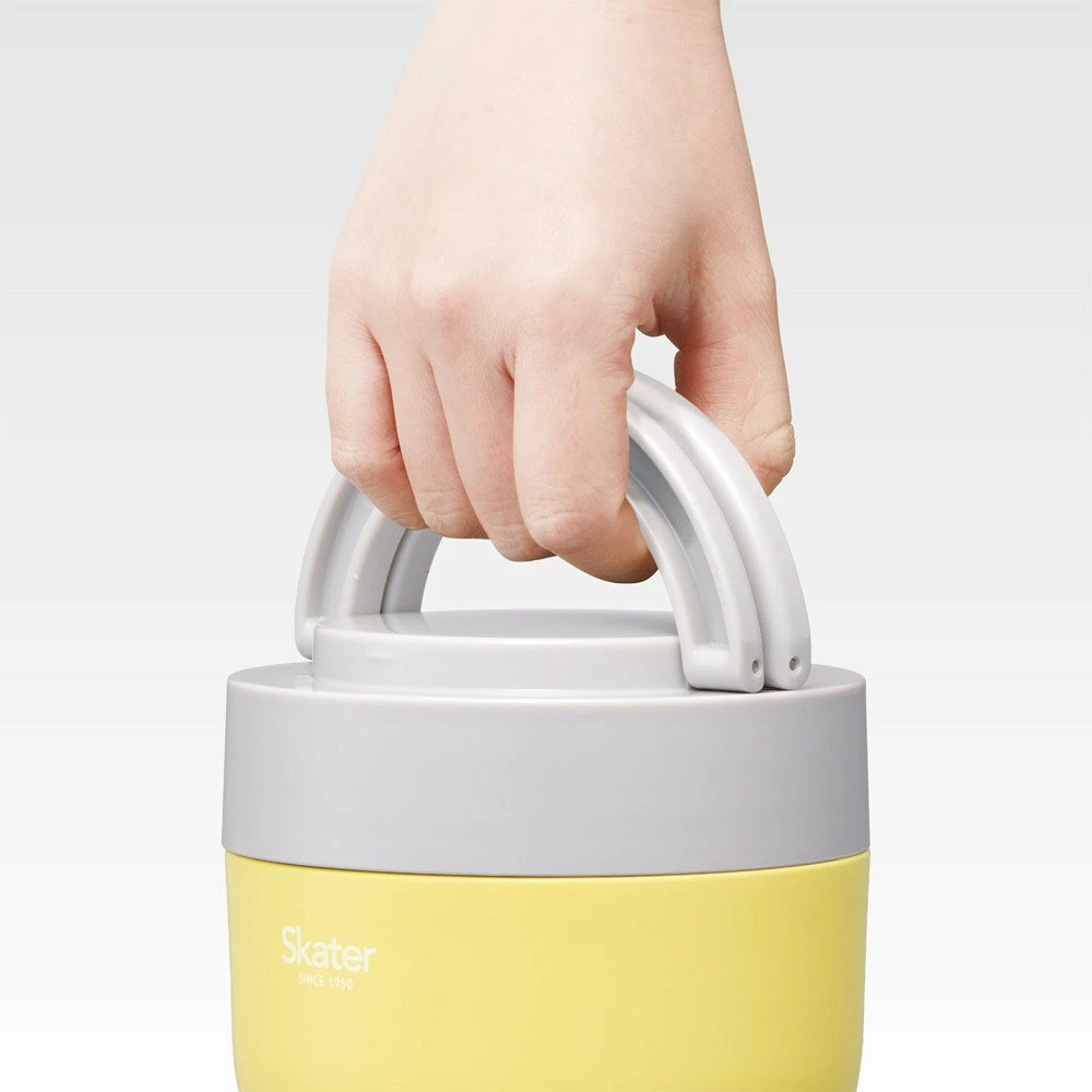 チョイスPayポイントと交換できる品 電子レンジが使えなくても、あったかごはんを持ち運べるカフェ丼です★ 折りたたみハンドル付保温ジャー サフランイエロー スケーター株式会社 9-041