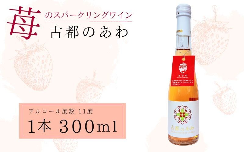 スパークリングワイン いちご 古都のあわ 300ml 1本 奈良のブランドいちご 古都華 100%使用 甘口 度数約11% デザートワイン アペリティフ 食前酒 パーティ 誕生日 お祝い プレゼント ギフト 贈り物 お歳暮 ふるさと納税 国産 イチゴ 苺 甘い お酒 酒 ワイン 人気 おすすめ 奈良県 奈良市