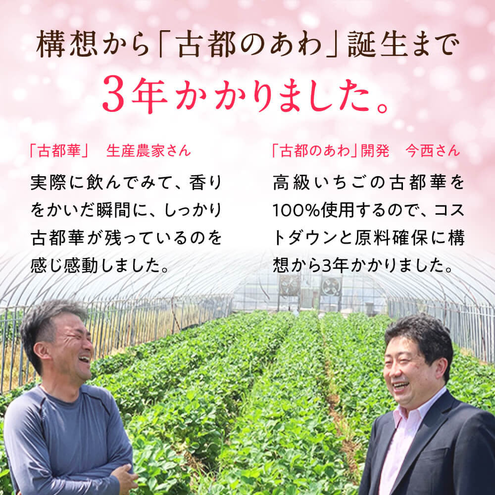高級いちごの古都華を100%使用するので、コストダウンと原料確保に構想から3年かかりました。