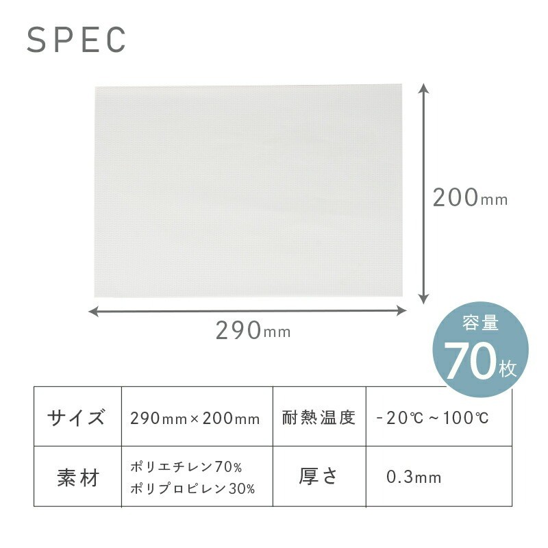 | 容量 | スペック サイズ ・290mm×200mm ・耐熱温度:-20℃~100℃ ・素材:ポリエチレン70% / ポリプロピレン30% ・厚さ:0.3mm 注意事項 ・使用後、軽い汚れであれば水洗い可能です。 ・包丁などで強く切りつけると、本製品に傷や割れが生じる可能性があります。 ・オーブン・直火・電子レンジでの加熱では使用しないでください。 ・使用時の破損や事故等につきましては責任を負いかねます。 ・輸入品の為、輸送の際に生じるキズ・汚れ・箱潰れがある場合がございますが新品です。 ・サイズ・重量は、多少の誤差が生じる場合がございます。 ・あくまで画像はイメージですので、商品改良の為パッケージや一部仕様が少し変更になる場合もございます。 ・お使いのブラウザや設定により、画像と実際の商品との若干の色の違いが生じる場合がございます。 ・会社概要・お買い物ガイドに他にも詳しく記載しておりますので事前に確認していただくことをお勧め致します。 生産国:中国製 |