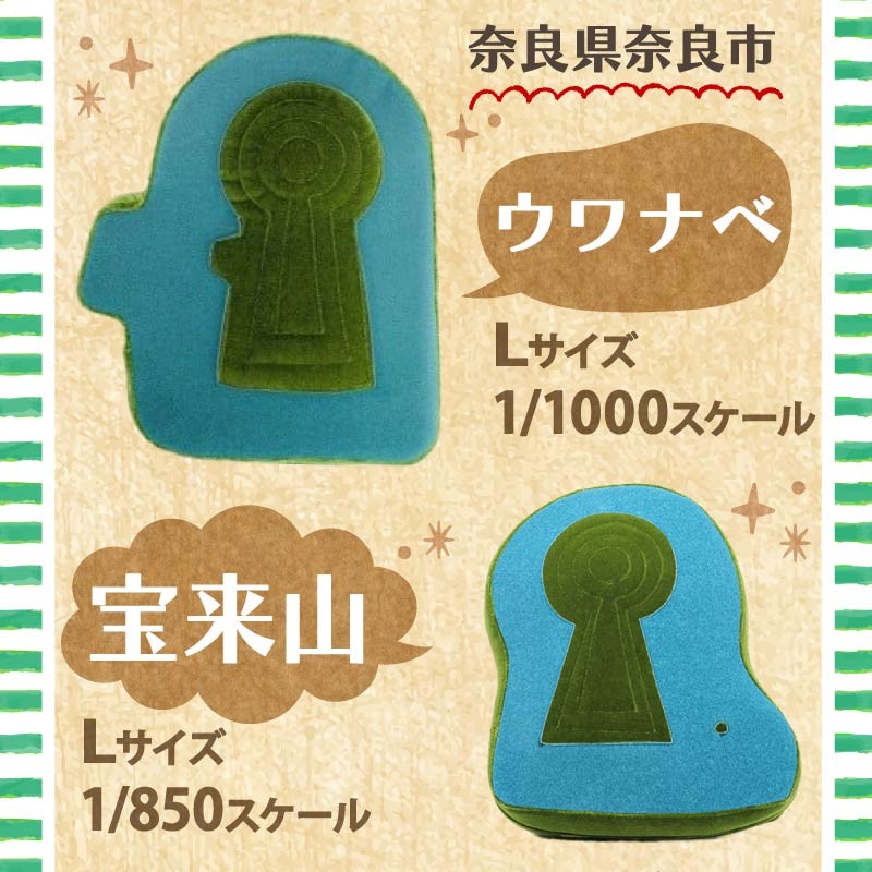 -規模(サイズ)- 全長440mm/前方部幅320mm/くびれ部幅190mm/後円部径300mm/墳丘の高さ120mm -重量(重さ)- 約700g -表面材質(生地)- ソファなどに使われる、椅子張り専用の生地「消臭アクリルモケット(AC100%)」を使用。 -内部構造(クッション)- ソファなどに使われる、密度・硬さの異なるウレタン、ウレタンチップの三層版築構造。 通常のクッションとは異なり、硬めで非常にしっかりした仕上がりとなっています。 -築造方法- 椅子張替え職人が一基一基全ての工程をひとりで手作りしています。 -築造時の美しい外観を保つために- 柔らかいブラシで毛の順目方向にそってブラッシングしてください。 モケット地は毛の順目方向にそって拭きます。 汚れが目立つ場合は、ぬるまゆで300~400倍に薄めた中性洗剤に布を浸し、 固く絞って汚れを拭き取ってください。 その後、よく水拭きしてから柔らかい布で乾拭きしてください。 -古墳クッションを愛でる上でのご注意- 洗濯は生地の性質上おやめください。 また、ファスナーを開けてカバーを取られますと復元困難となります。お気をつけください。