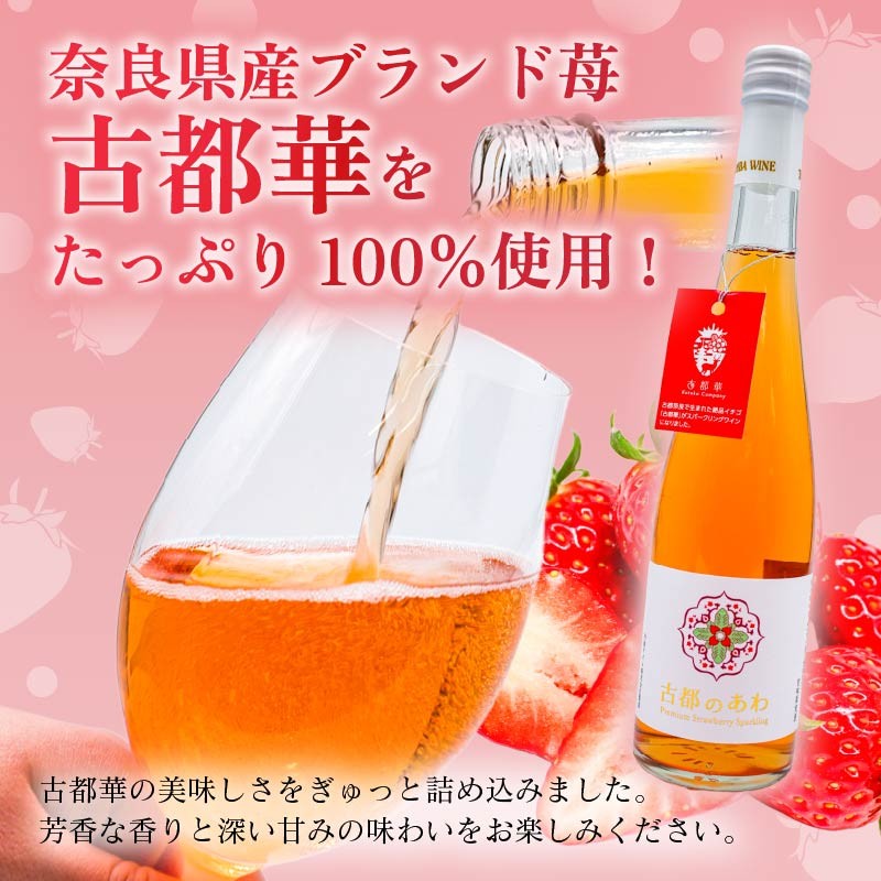 スパークリングワイン 甘口 いちご 古都のあわ 1本 500ml 度数約11% スパークリング ワイン 古都華 ことか 100%使用 お酒 酒 ワイン わいん すぱーくりんぐわいん 人気 おすすめ デザートワイン アペリティフ パーティ 誕生日 お祝い プレゼント ギフト 贈り物 株式会社泉屋 奈良県 奈良市