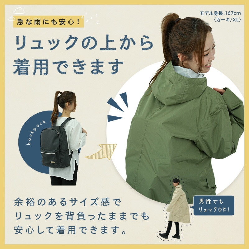 長めの丈で露出を最低限に出来るので 雨 からしっかりカバー可能!