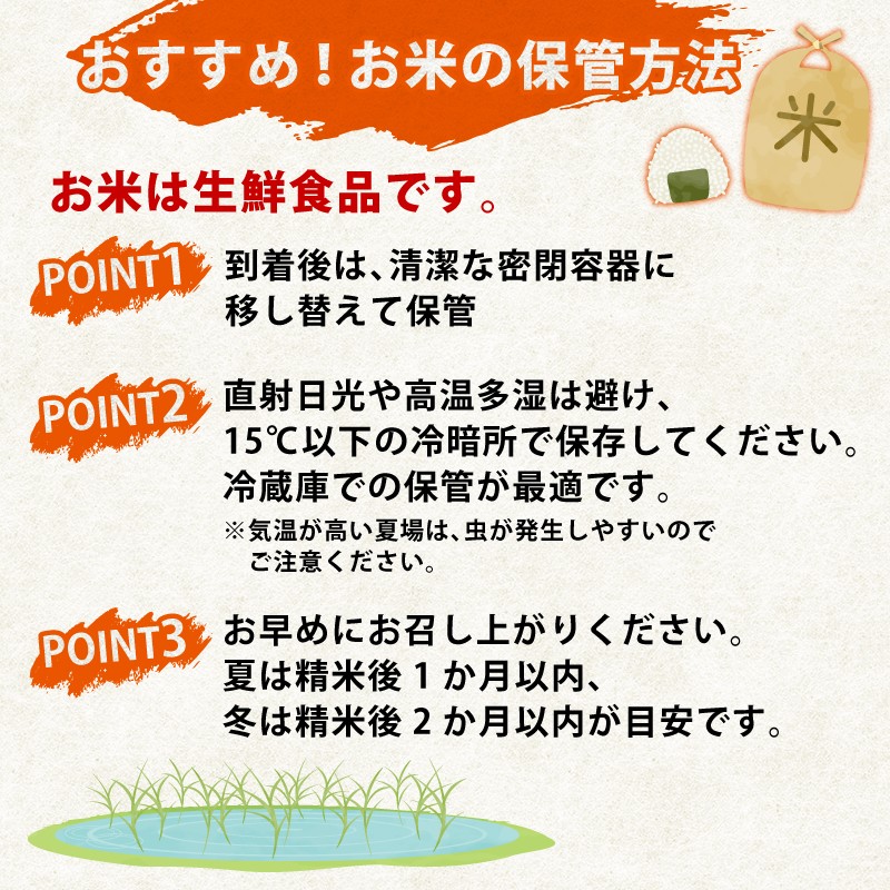 ※お米は生鮮食品です。精米日から夏は1か月、冬は2か月を目安にお召し上がりください。