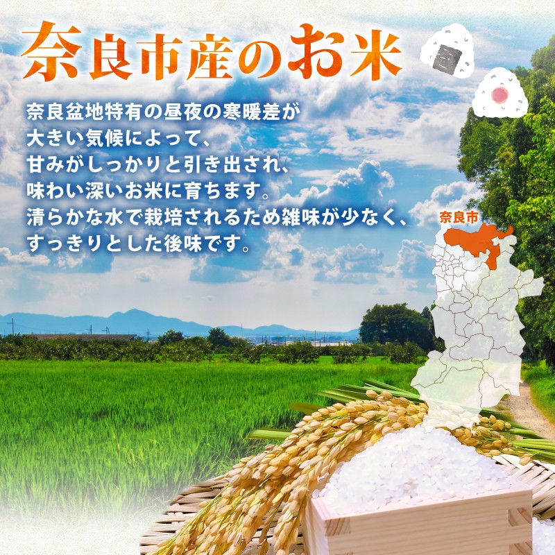 昔、奈良の都があった場所、世界遺産に囲まれた土地で作ったお米です。