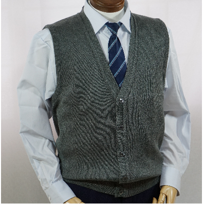 無地 メンズニット オープンベスト グレー L寸 15220【1219036】