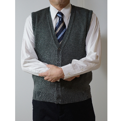 ※画像はイメージです。お届けするお礼品は、無地 メンズニット オープンベスト グレー L寸(身幅52cm 身丈66cm)1枚です。