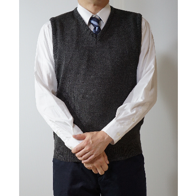 ※画像はイメージです。お届けするお礼品は、無地 メンズニット ベスト チャコール 4L寸(身幅61cm 身丈70cm)1枚です。