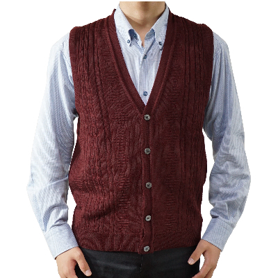 ※画像はイメージです。お届けするお礼品は、模様有 メンズニット オープンベスト ワイン L寸( 身幅51cm 身丈66cm)1枚です。
