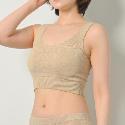 ●無縫製(ホールガーメント(R))で、ホック、金具等を一切使用せず、糸のみで優しくあたたかいニットブラです。