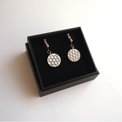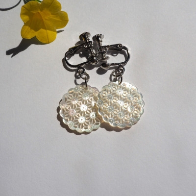 白蝶貝のレース彫刻「麻」イヤリング【1237884】
