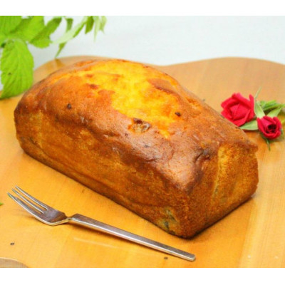 梅酒の梅の実を練りこみ焼き上げ、さらに梅酒シロップをたくさん含ませているので、パウンドケーキと違いしっとりしています。