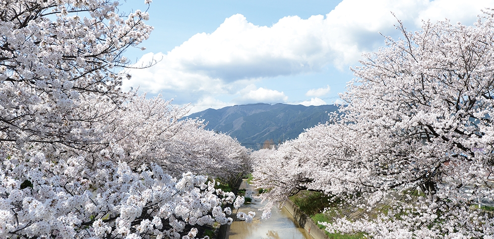 市内には葛城川と高田川が南北に流れ、春になると大中公園を中心に川の両岸南北2.5キロメートルにわたり、見事な桜のトンネルが続きます。夜になってもライトアップされた夜桜を見物する人の波は絶えることなく、奈良県を代表する桜の名所となっています。
