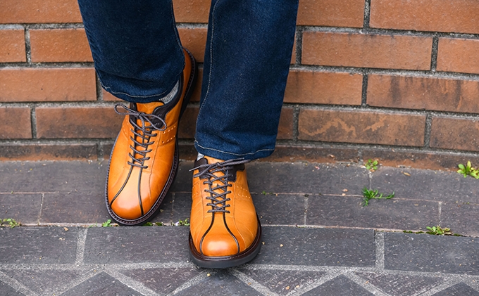 ソールは高性能なビブラムソールでアッパーは独特のムラ感と艶感が特徴のホースレザーを使用し、履き心地とデザイン性を兼ね備えたハイクオリティーなタウンカジュアルシューズ。奈良県大和郡山市で製造し、大和の職人が1足1足丁寧に仕上げた価値ある逸品。サイズの目安はスニーカーのサイズから0.5cm~1cm下、革靴のサイズからは表示サイズ相応か0.5cm上。ワイズは2E~3E相当。サイズ感はタイト目。※甲高の方やゆったり履きたい方は通常の革靴サイズより0.5cm上をお勧めします。