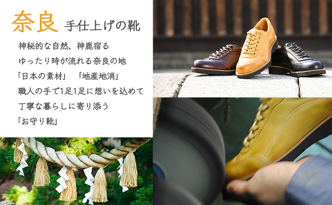 表革と中敷きに吸湿性、通気性が良くしっとり柔らかな鹿革を使用したレディースカジュアルシューズ。足を入れた瞬間から優しい履き心地。片足約250g(23.5cm片足基準)でとても軽量。この鹿革は奈良県宇陀市で鞣され、靴は奈良県大和郡山市製というメードイン奈良の逸品。カラーはダークブラウン。サイズは22.5cm~24.5cm(0.5cm刻み)