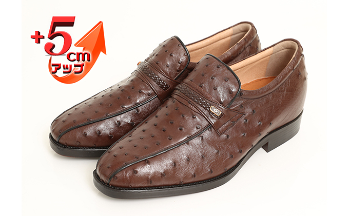 オーストリッチ革 ビジネスシューズ 紳士靴 スワローモカ 5cmアップ 4E ワイド No.67 ブラウン 24.5cm [№5990-7671]0280