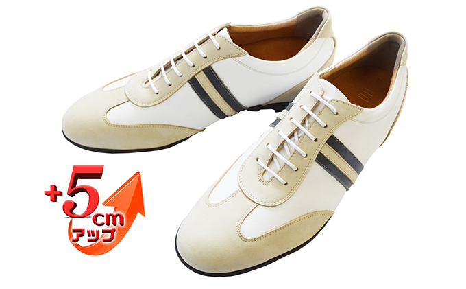 レザースニーカー 本革 カジュアルシューズ 5cmアップ シークレットスニーカー No.899 ホワイト 24.5cm [№5990-7691]0283