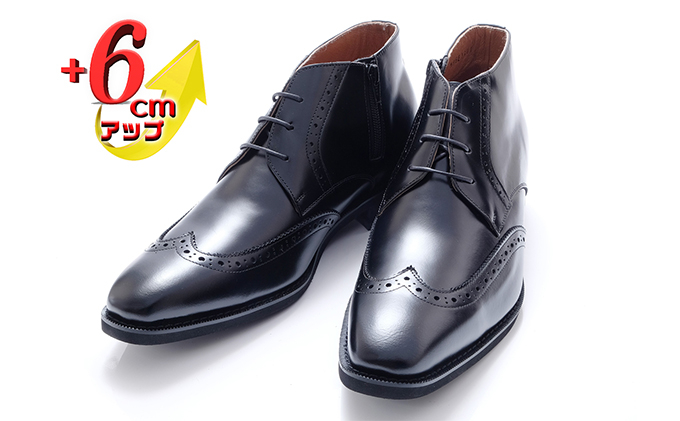 866 ビジネスブーツ 本革 革靴 紳士靴 ウイングチップ 6cmアップ シークレットブーツ No.1302 ブラック [№5990-0286]