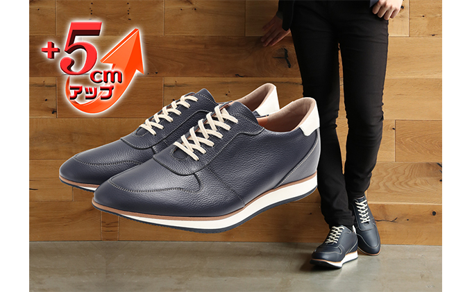 レザースニーカー 本革 カジュアルシューズ 5cmアップ シークレットスニーカー No.801 ネイビー [№5990-0304]