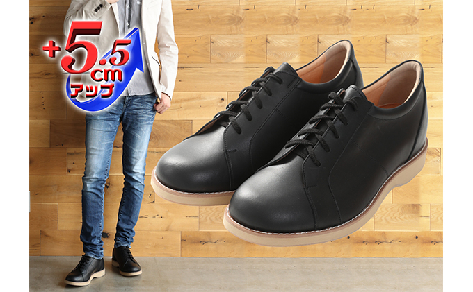 本革 幅広 4E ワイド レザーカジュアル メンズ 5.5cmアップ シークレットスニーカー No.516 ブラック 24.0cm [№5990-7887]0318