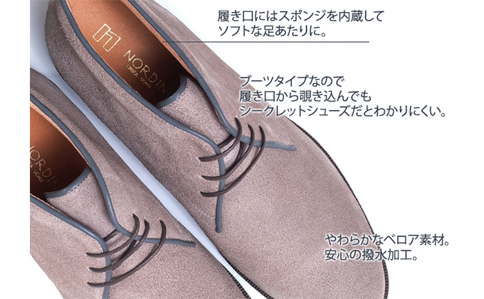 牛革 本革 日本製 ベロア チャッカーブーツ 5cmアップ カジュアルシューズ シークレットブーツ 撥水 No.850 グレー 25.0cm [№5990-7916]0322
